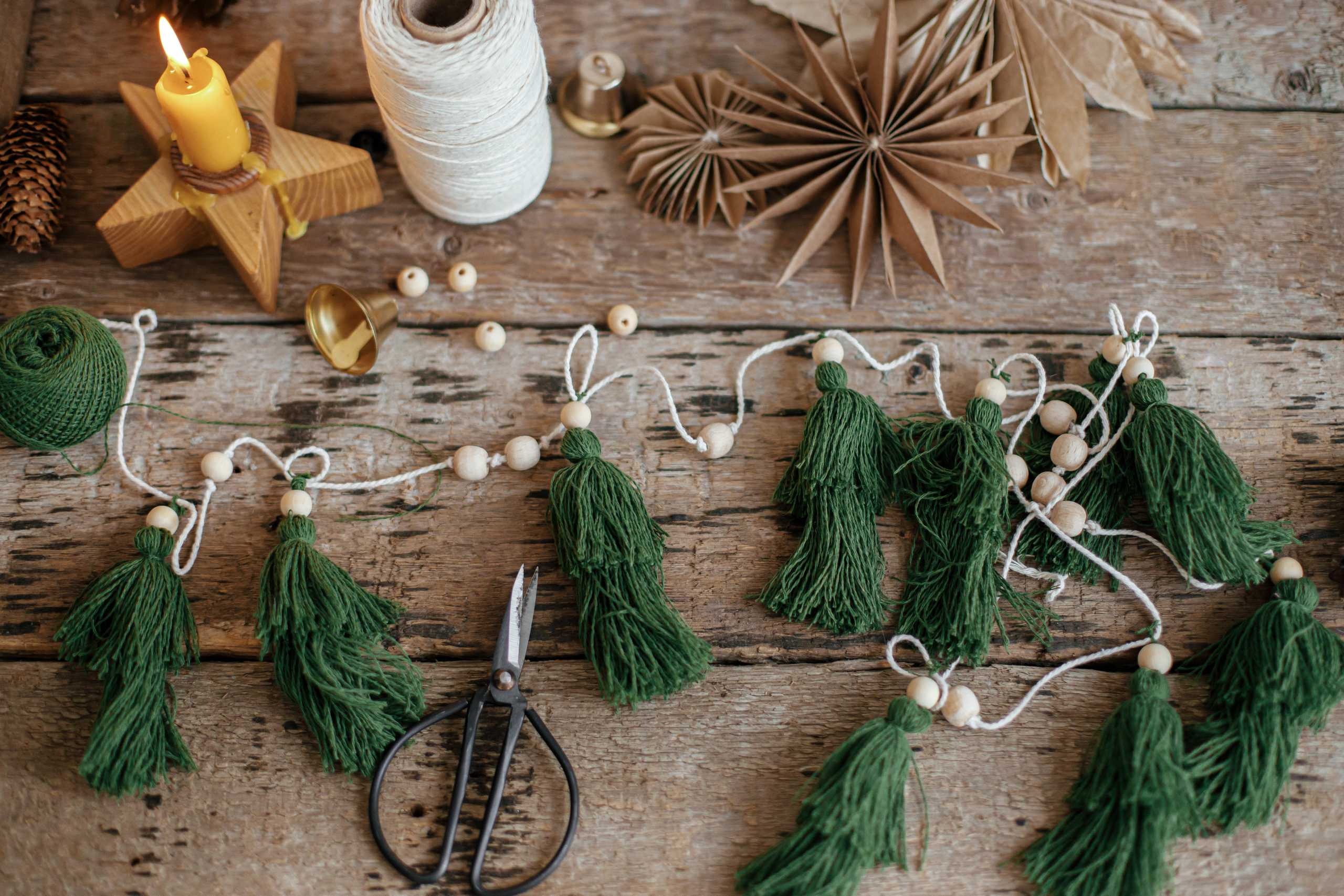 Combine colors and textures to design garlands with natural harmony.